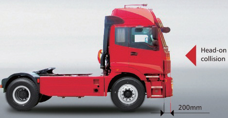 Backward Displacement Technology Of Driving Cab In Case Of Collision -The air suspension at four corners and 200mm buffer zone in compartment can provide the largest safety in case of collision. -The driving cab can tilt electrically and manually. The tilt angle can reach 59° and there is ratchet wheel locking mechanism.